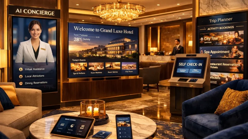 نقدم أنظمة إدارة فنادق وشقق مخدومة متكاملة مدعومة بالذكاء الاصطناعي، مع تكامل كامل مع بوابات الحجز وأنظمة الدفع الإلكتروني.